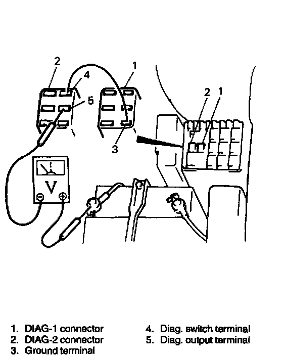 3. Connect positive probe of analog type voltmeter to positive terminal of battery and negative probe to diag. output terminal of DIAG-2 connector.