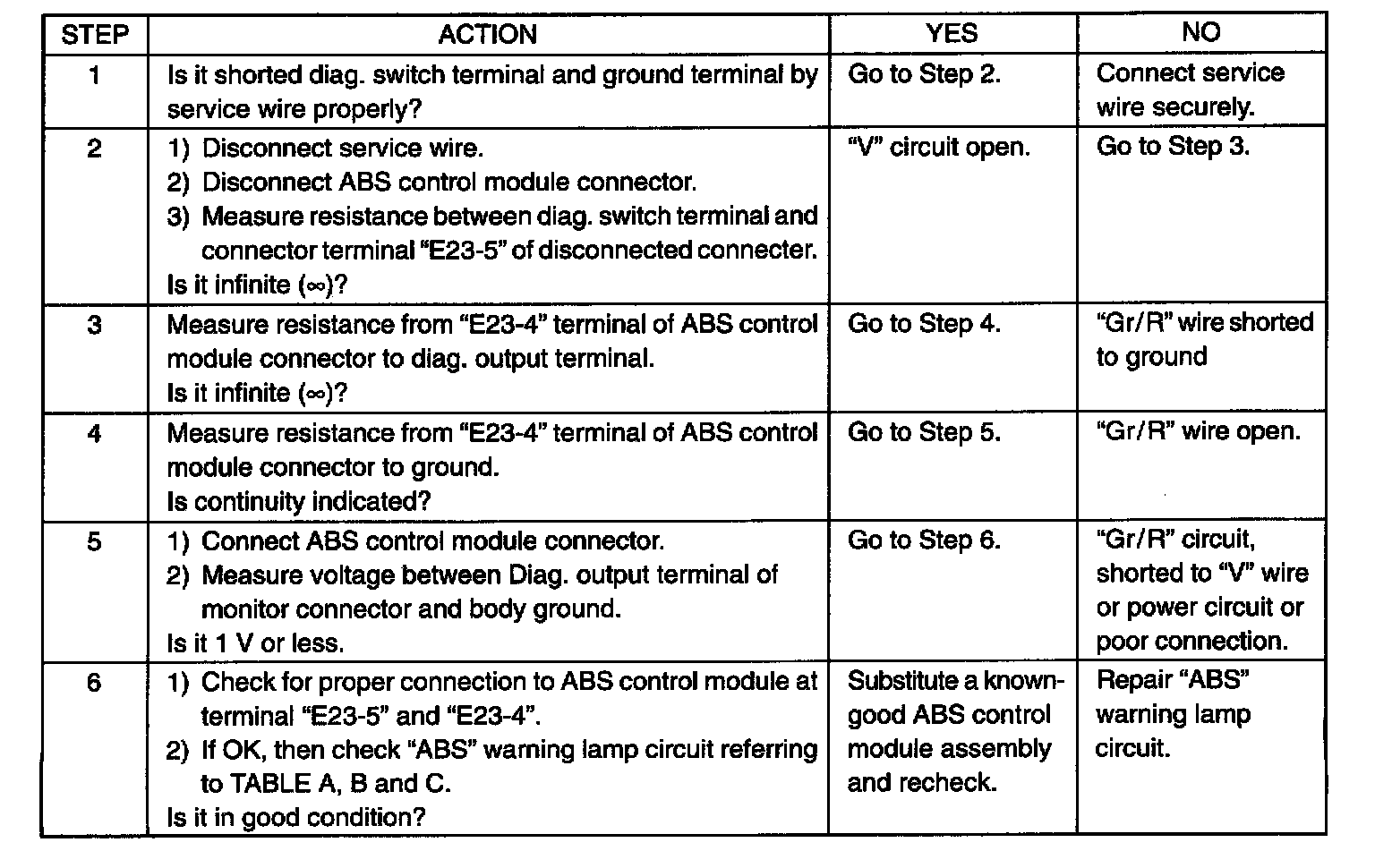 Table D: DTC No Output From Diag. Term W/Diag. Switch to Ground
