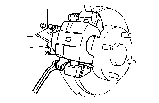 2. Remove brake flexible hose mounting bolt from caliper. As this will allow fluid to flow out of hose, have a container ready before hand.