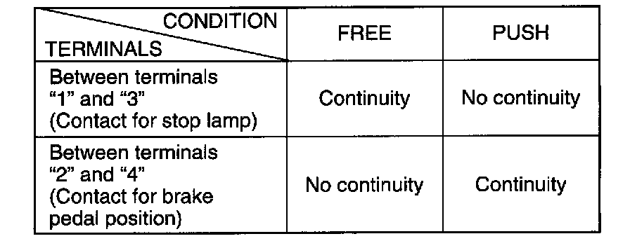 3. Check switch (two contacts) for resistance under each of following each conditions.