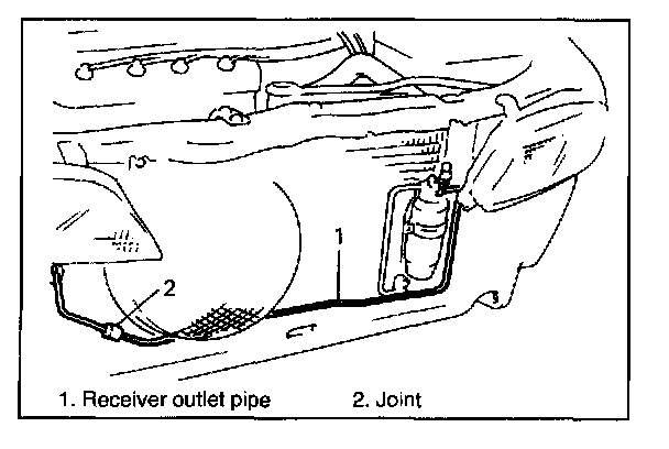 NOTE: As soon as above hose and pipe are disconnected, cap opened fittings so that moisture and dust do not enter condenser.