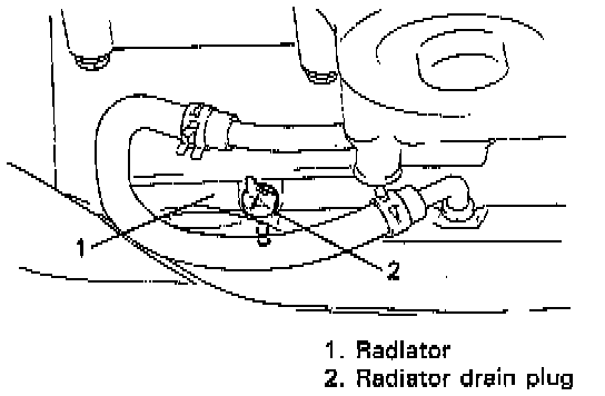 4. Close drain plug. Add water until system is filled and run engine until upper radiator hose is hot again.