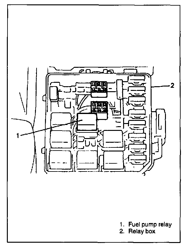 6. Upon completion of servicing, connect fuel pump relay to relay box and install relay box cover.