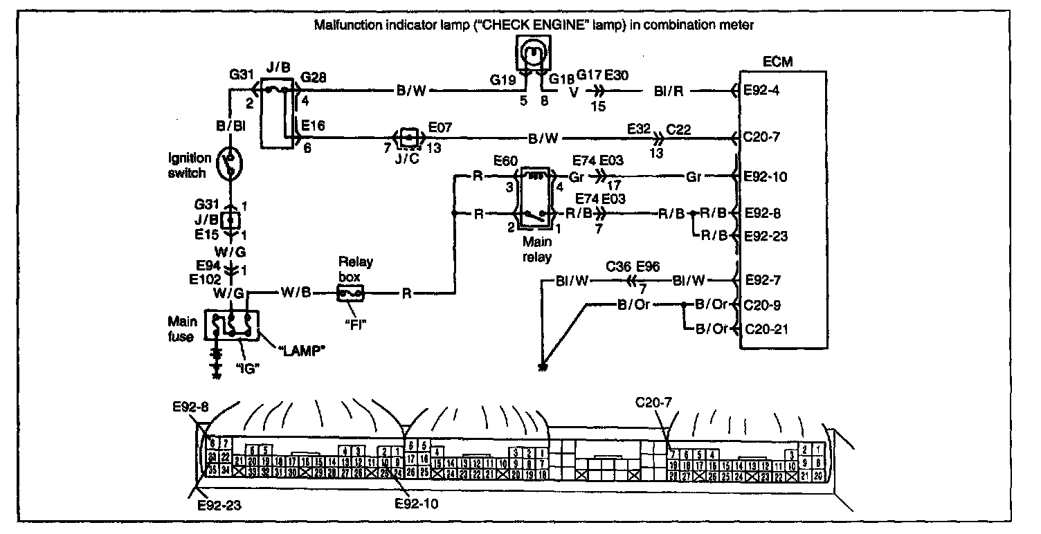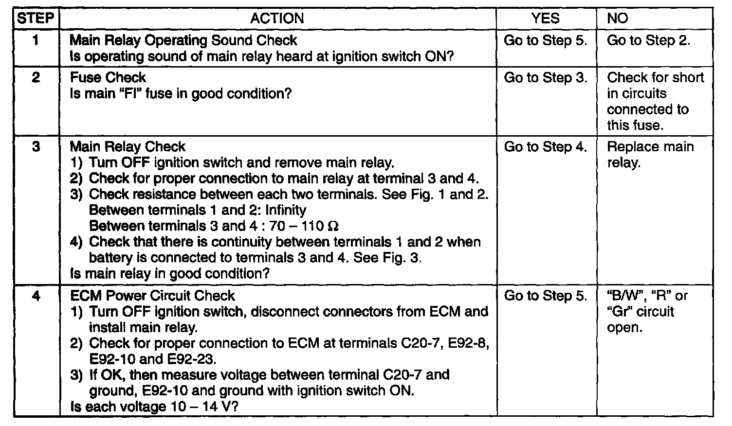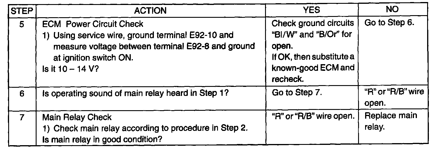Table A-3 ECM (PCM) Power and Ground Circuit Check - MIL Doesn't Light At Ignition Switch on and Engine Doesn't Start Though it is Cranked UpWiring Diagram: