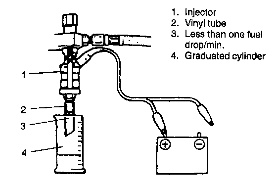 7. Apply battery voltage to injector for 15 seconds and measure injected fuel volume with graduated cylinder.