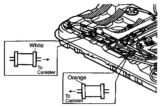 1. Install tank pressure control valve-1 or -2 to fuel tank in such direction that vapor flows from its orange or white nozzle side towards canister.
