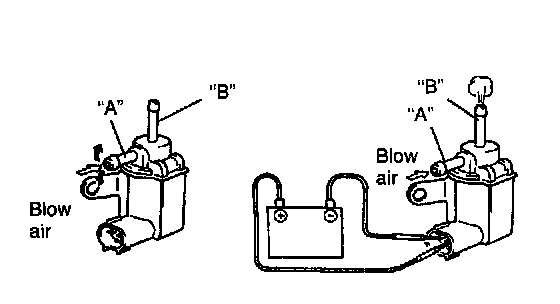 2. Blow air into nozzle "A". Air should not come out of nozzle "B".