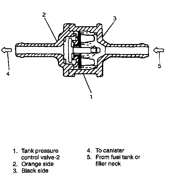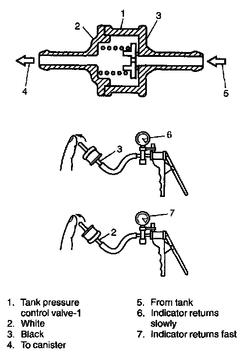 1. Air should pass through valve smoothly from black side of tank pressure control valve to orange side when blown hard.