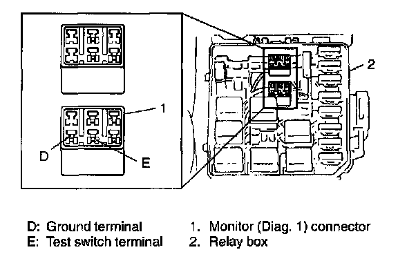 Connect D and E terminals of monitor (Diag. 1) connector or E to body by using service wire so that ignition timing is fixed on initial one.