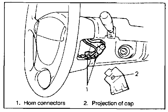 3. Connect horn connectors securely, fit connector onto projection of steering wheel right side cap and then install right side cap on steering wheel lower cover.