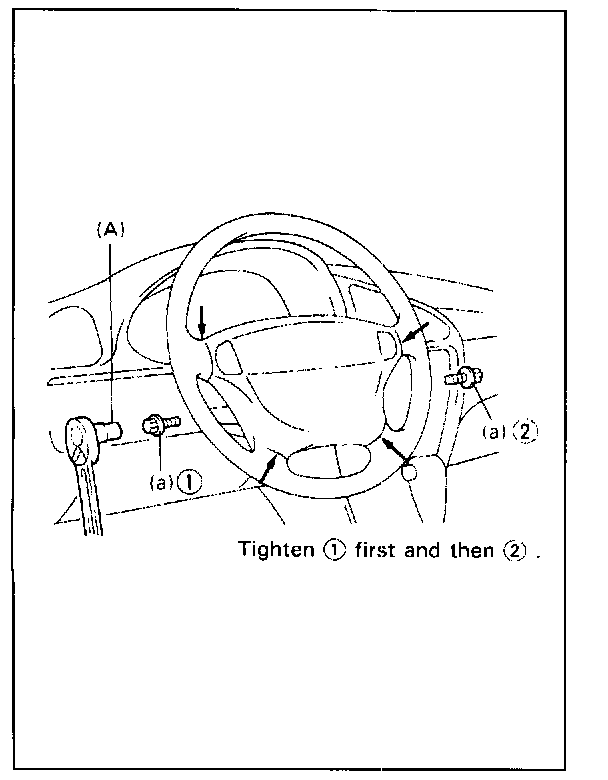 2. Tighten air bag (inflator) module left side bolt first and then its right side bolt to specified torque.