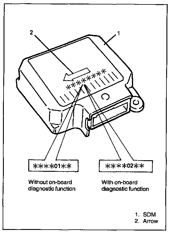 SDM with on-board diagnostic function provides air bag diagnostic trouble codes by flashing "AIR BAG" warning lamp when on-board diagnosis function is used.