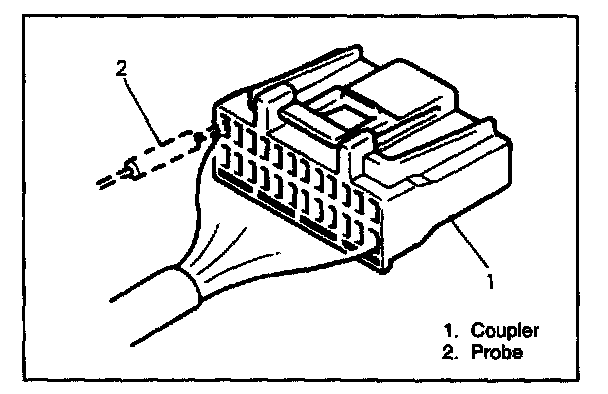- When connecting meter probe from terminal side of coupler because it can't be connected from harness side, use extra care not to bend male terminal of coupler of force its female terminal open for connection.