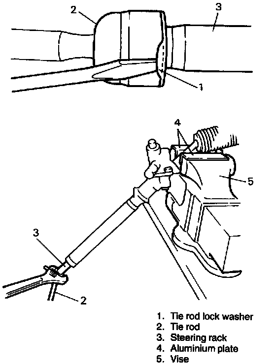 1. Install new tie rod lock washer and tie rod to rack.