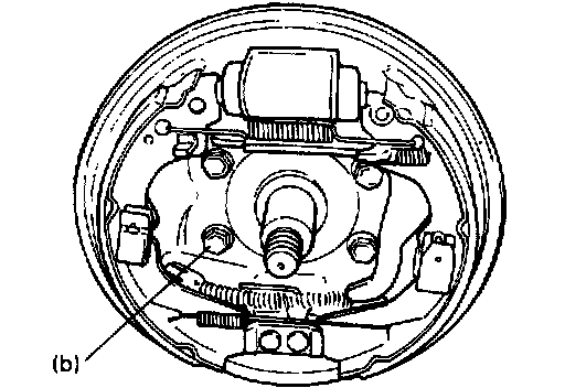 11. Upon completion of all jobs, depress brake pedal with about 30 kg (66 lbs.) load three to five times so as to obtain proper drum-to-shoe clearance. Adjust parking brake cable.
