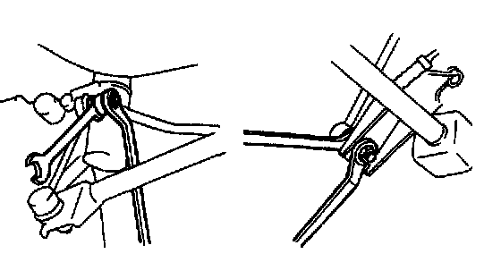 2. Remove stabilizer link nuts. Then remove stabilizer joints from stabilizer bar. When loosening link nut and joint nut, hold stud with wrench.