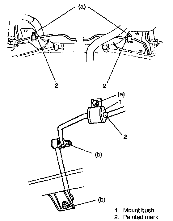 NOTE: If painted mark has faded out, align the vehicle center and the center of stabilizer bar.
