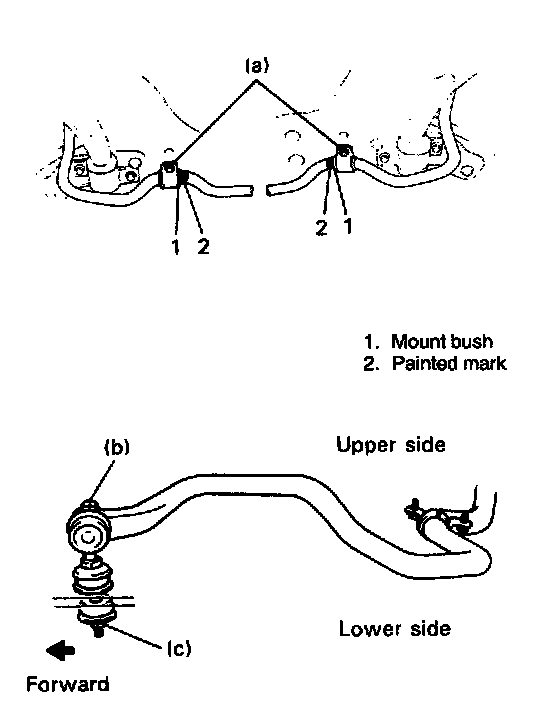 NOTE: If painted mark has gone, align the vehicle center and the center of stabilizer bar.