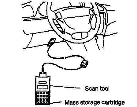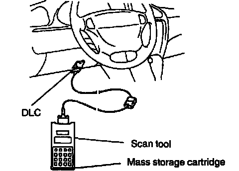 1. Set mass storage cartridge to scan tool and connect scan tool to DLC with ignition switch OFF.