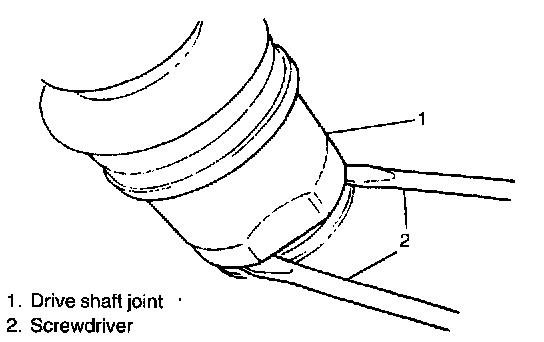 18. By using large size screwdrivers, pull out drive shaft joints at differential side so as to release snap ring fitting of joint (for LH drive shaft).