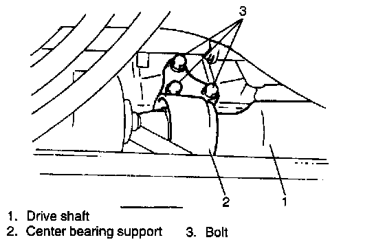 19. Remove center bearing support bolts and pull out center drive shaft from differential gear (for RH drive shaft).