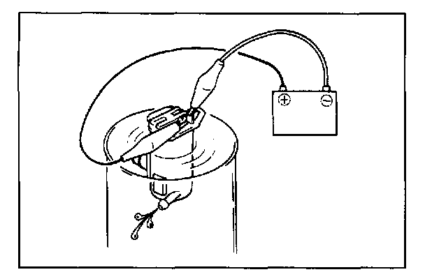 Connect battery (+) and (-) terminals to pump (+) and (-) terminals respectively to check pumping rate.