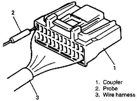 - When connecting a probe of any tester to coupler terminal, be sure to connect it from wire harness side of coupler.