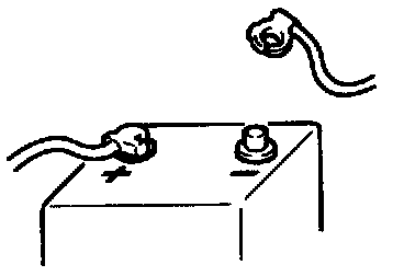 ^ When disconnecting cables from the battery, be sure to disconnect the one from the negative (-) terminal first and then the other from the positive (+) terminal.
