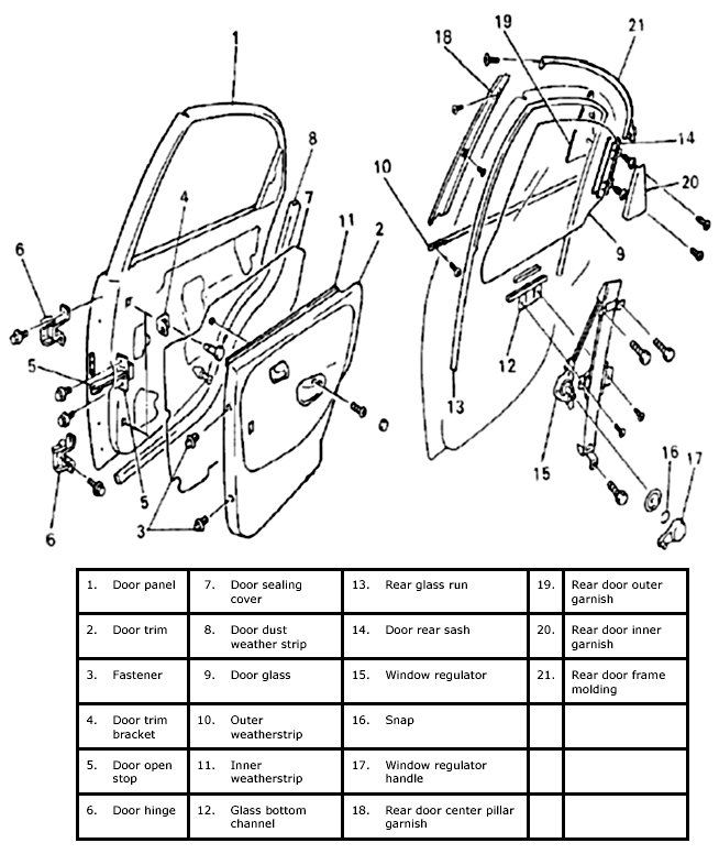 Rear Door Window Regulator Removal And InstallationRear Door Glass Components: