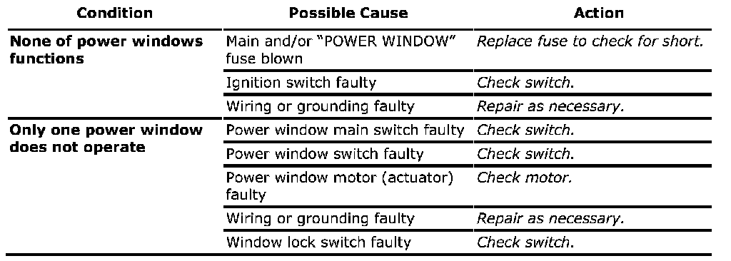 Power Window Control System Symptom Diagnosis