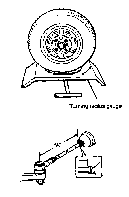 If steering angle is not correct, check if right and left tie rods are equal in length ("A").