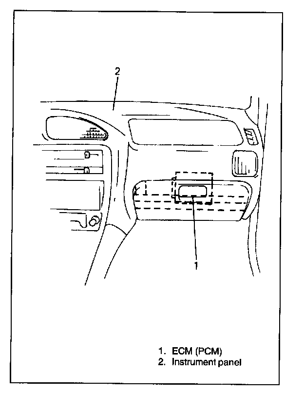 ECM (PCM) is installed to the underside of the instrument panel at the passenger's seat side.