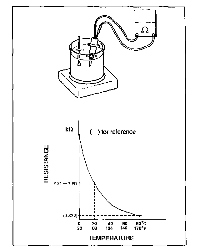 INTAKE AIR TEMPERATURE SENSOR (IAT SENSOR)Immerse temperature sensing part of IAT sensor in water (or ice) and measure resistance between sensor terminals while heating water gradually.