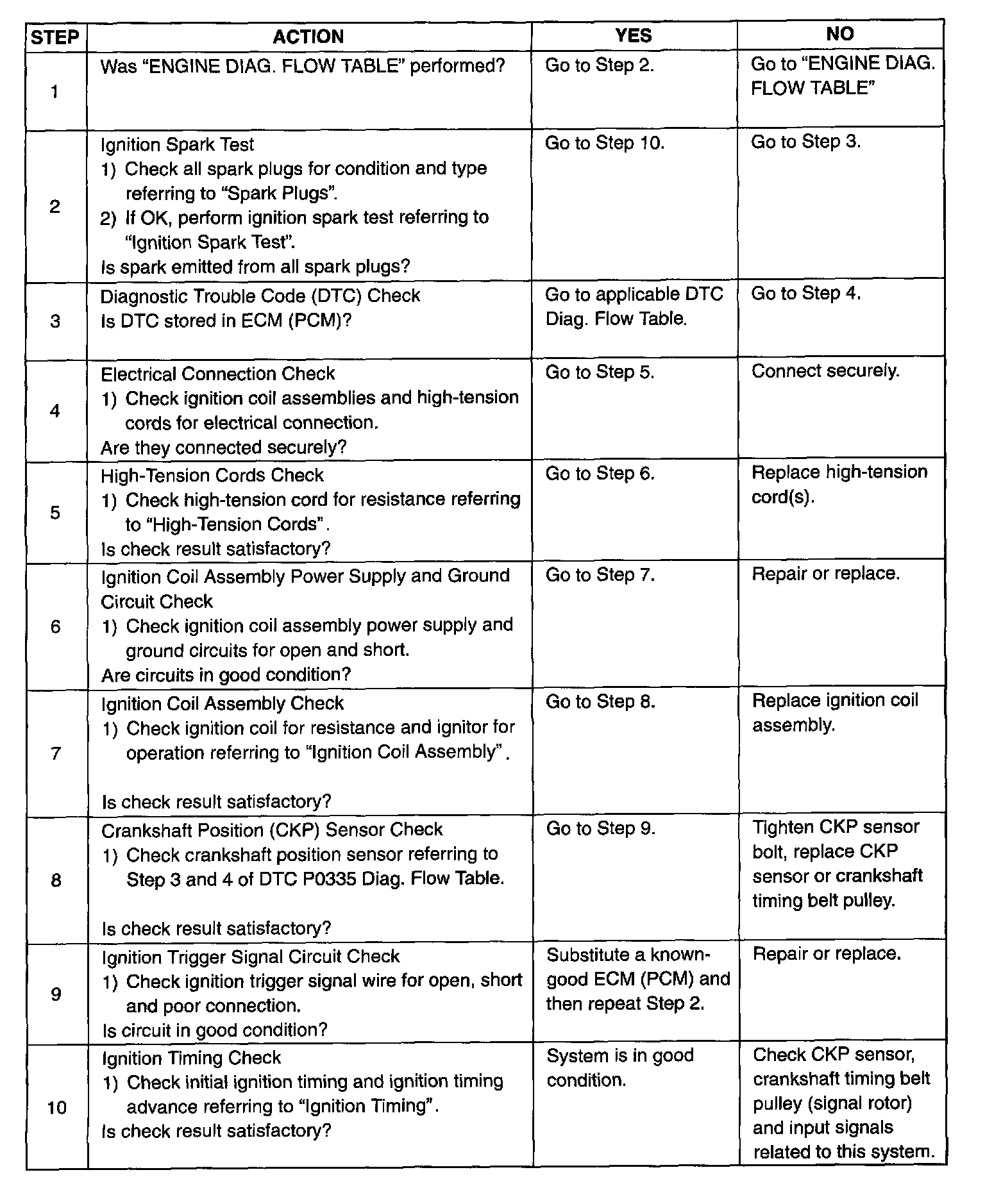 Diagnostic Flow Table