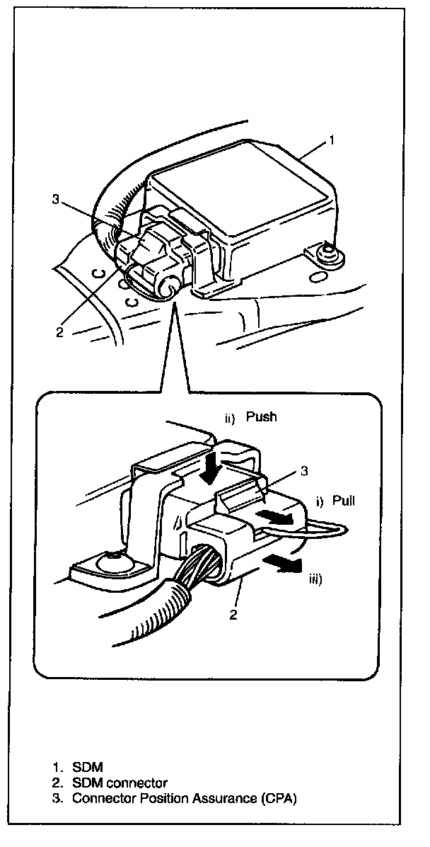Remove Connector Position Assurance (CPA) first and then disconnect connector while pushing connector lock.