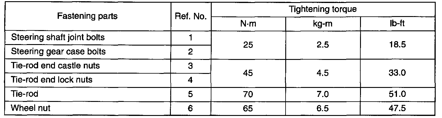 TIGHTENING TORQUE SPECIFICATIONS