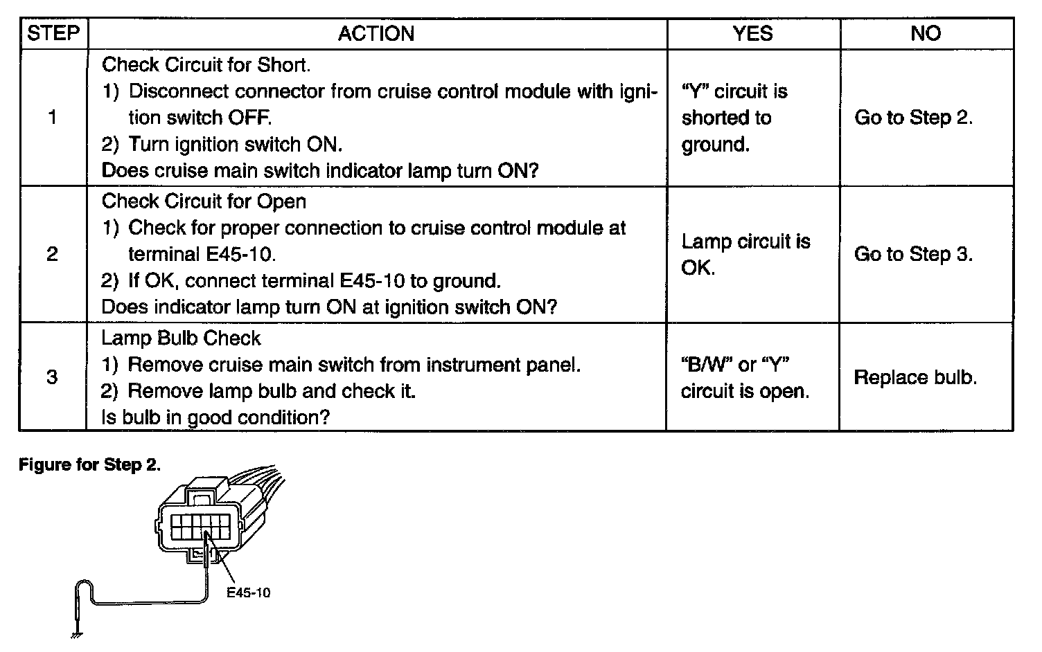 Cruise Main Switch Indicator Lamp Circuit Check (Step 1 - 3):