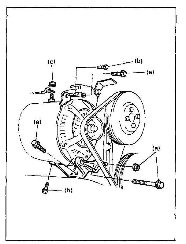 3. Remove generator mounting bolt and loosen drive belt adjusting bolt.