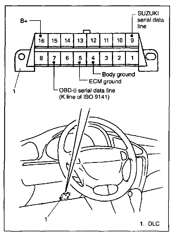 OBD-II serial data line (K line of 1S09141) is used for SUZUKI scan tool or OBD-II generic scan tool to communicate with ECM. SUZUKI serial data line is used for SUZUKI scan tool to communicate with an electronic control unit other than ECM (Airbag SDM, ABS control module, etc.).