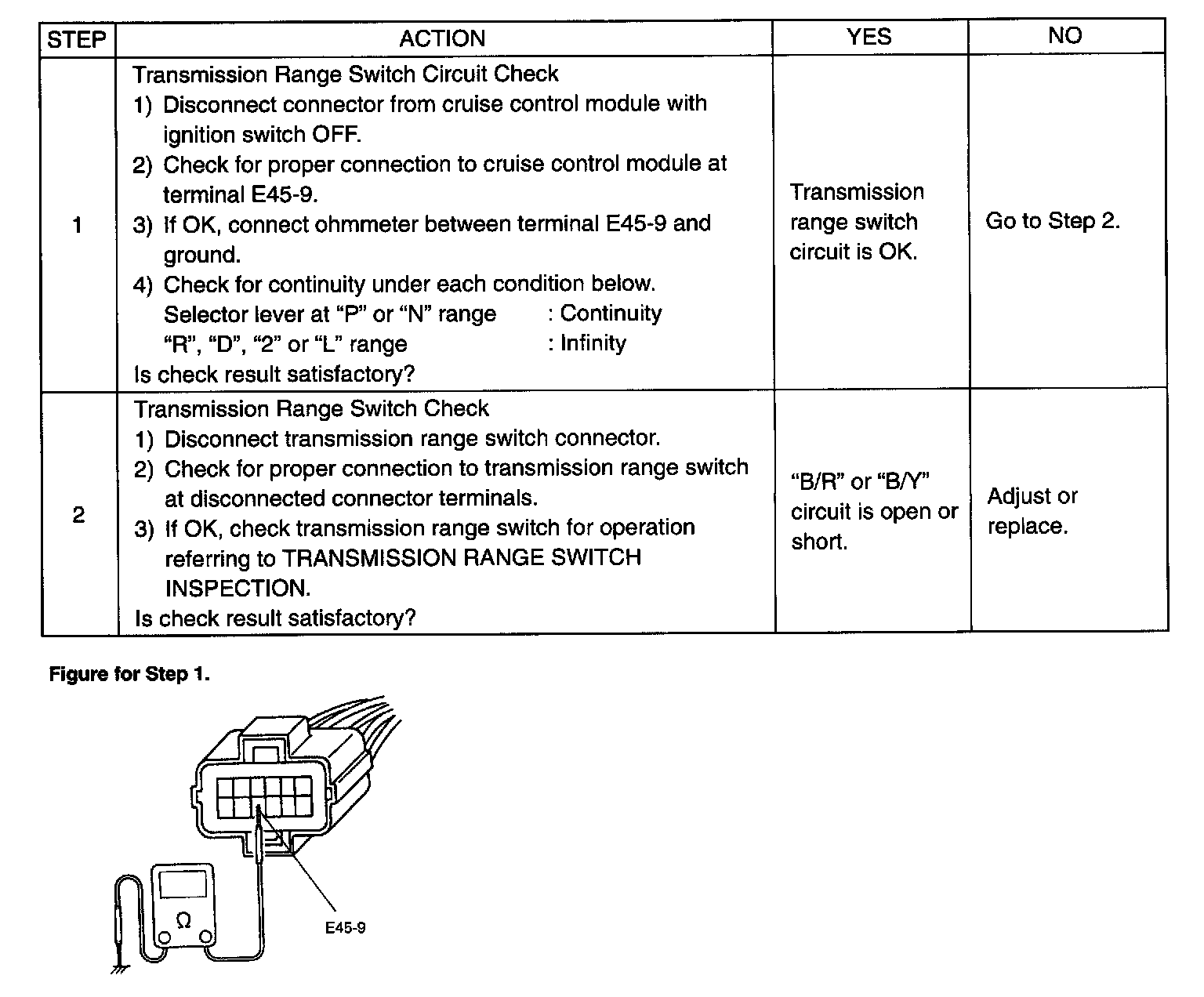 Transmission Range Switch (Park/Neutral Position Switch) Circuit Check (Step 1 - 2):