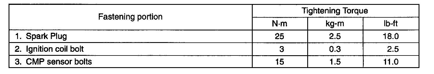 Tightening Torque Specifications: