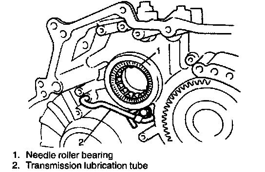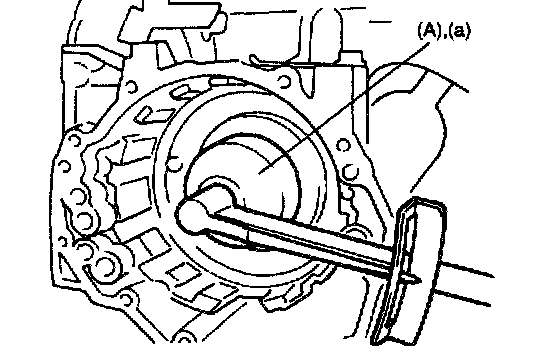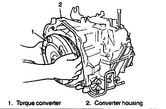 CAUTION: Remove torque converter as much straight as possible. Leaning it may cause to damage oil seal lip.