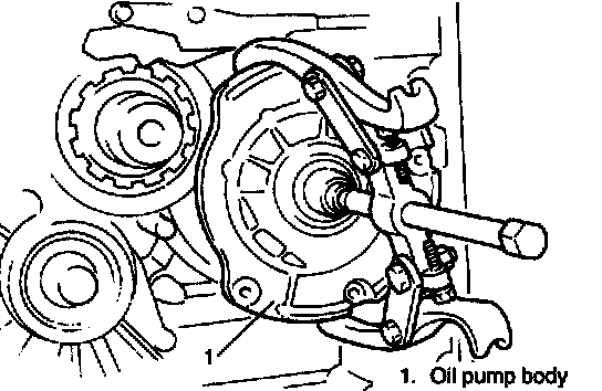 10. Remove six bolts of oil pump body, then remove oil pump body by hand.