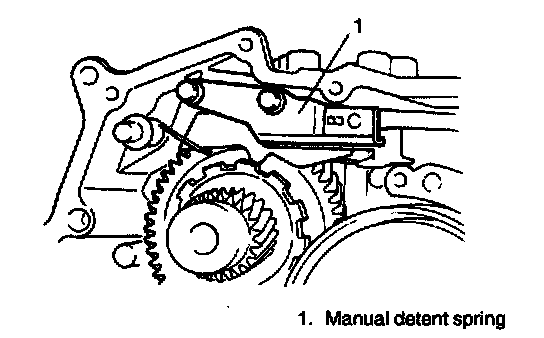 43. Remove parking lock pawl, pawl bracket and spring by removing two bolts.