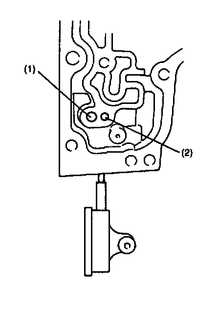 b. Measure piston stroke while applying and releasing compressed air (400 - 800 kPa, 4 - 8 kg/cm2, 57 -113 psi) from oil hole (1).