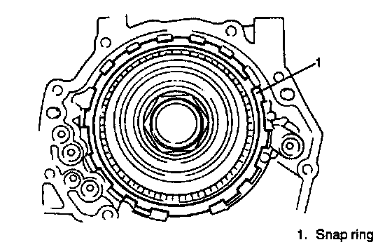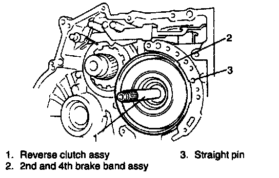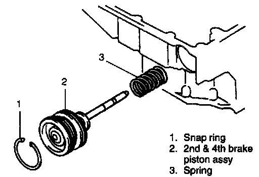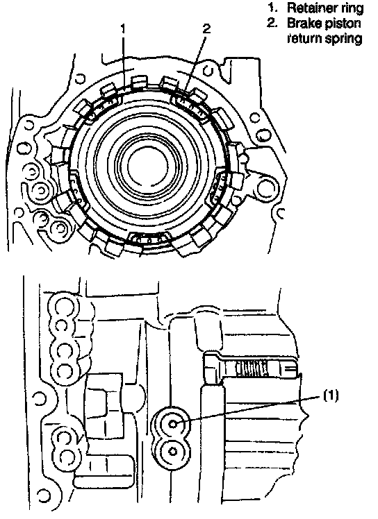 NOTE: If 2nd & 4th brake piston assy doesn't come out, apply compressed air through oil hole (1).