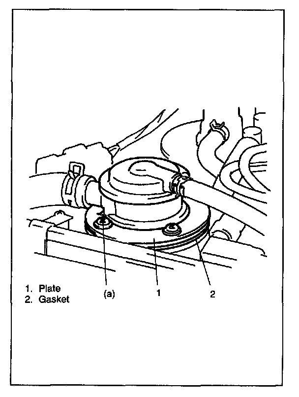 2. Install new gasket, refuel vapor control valve and plate to fuel tank.