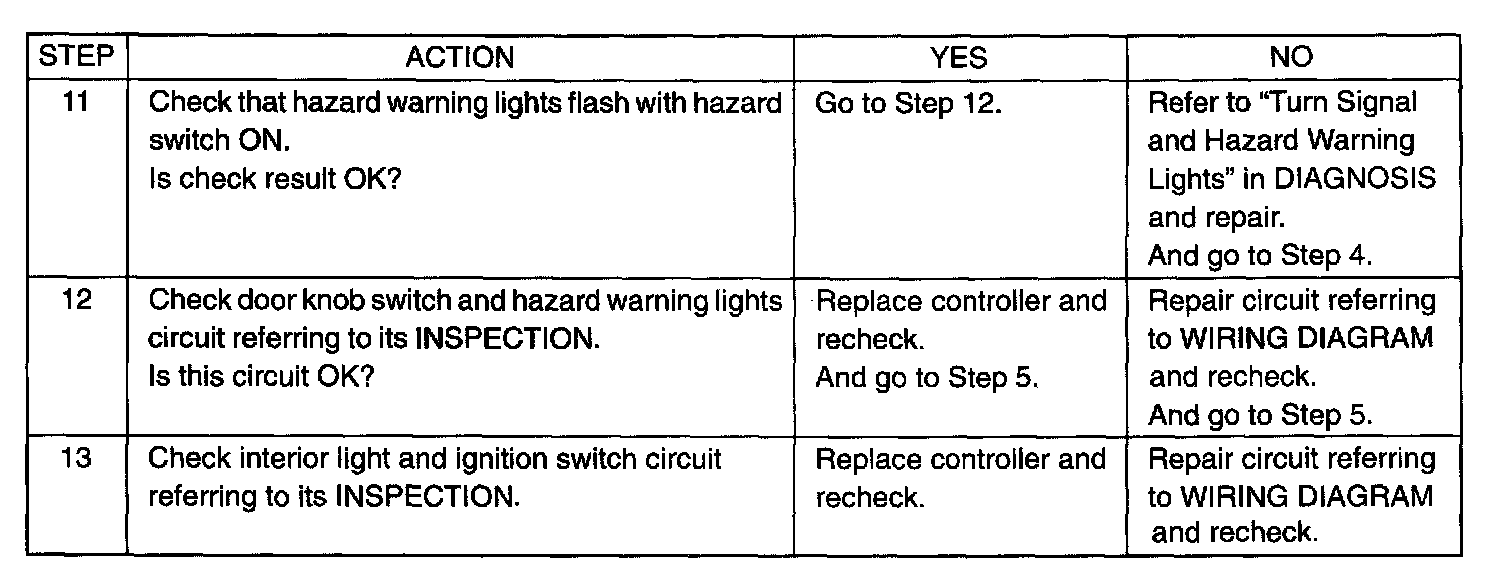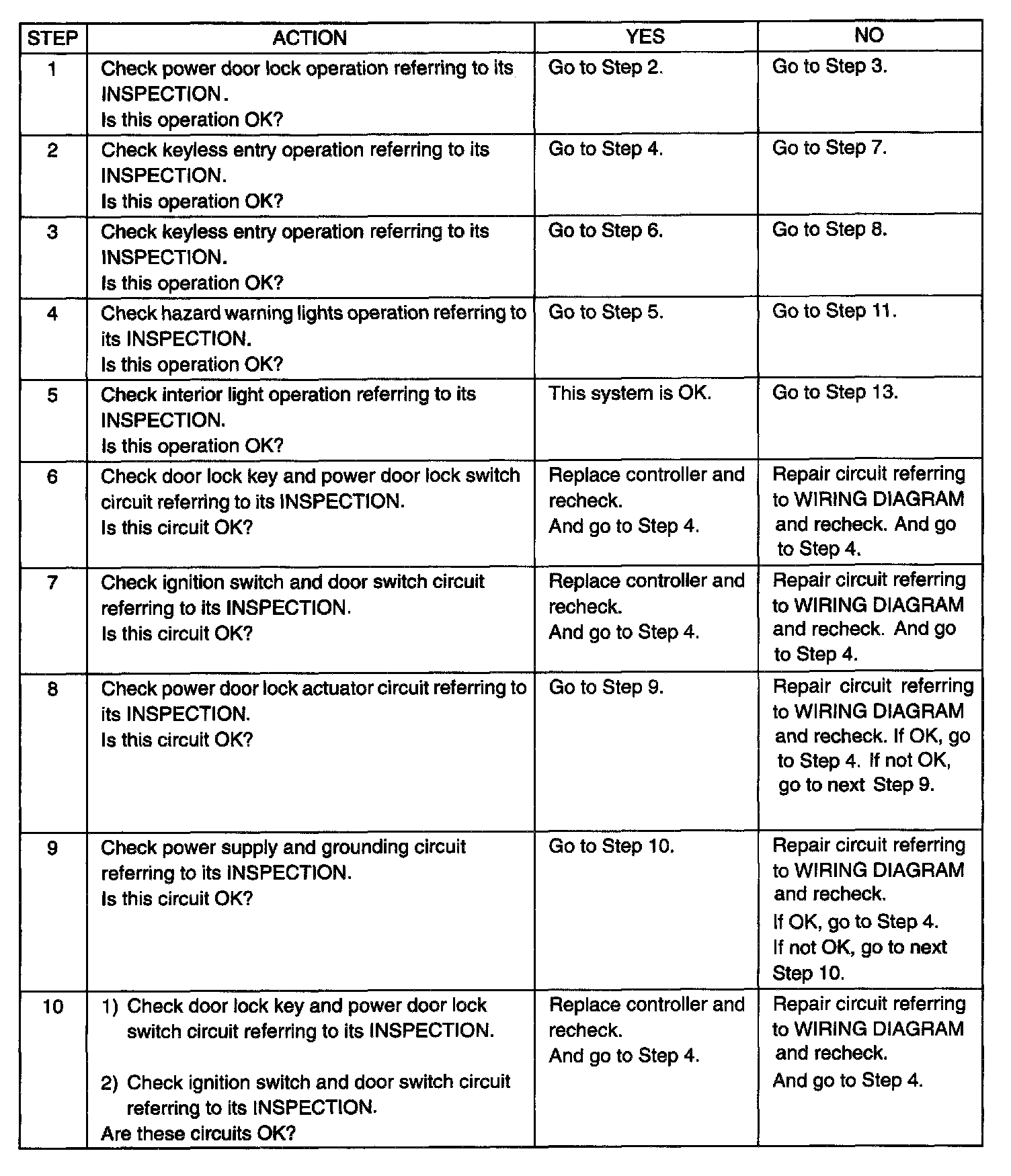 POWER DOOR LOCK AND KEYLESS ENTRY SYSTEM (IF KEYLESS ENTRY IS EQUIPPED)Step 1 - 10: