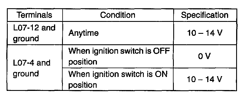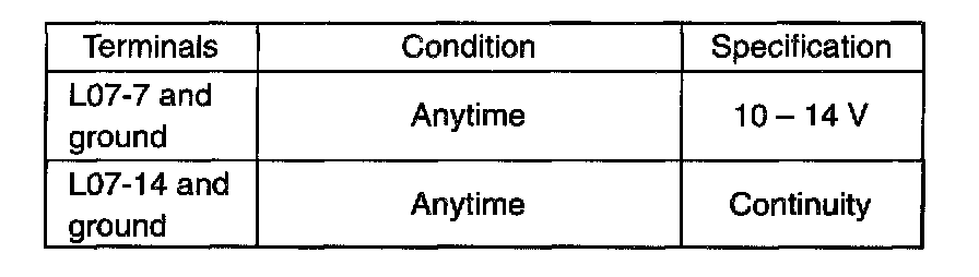 3. Check that the voltage between following terminals are specification.