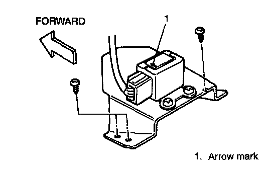 1. Using new screws' install sensor with bracket onto floor so that arrow mark directs vehicle forward.